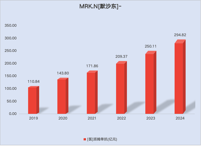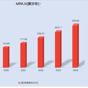 从财报收入结构来看,默沙东最赚钱的还是抗癌药-帕博利珠单抗,2024财年的收入有295亿美元,不过HPV疫苗的收入也有86亿美元。