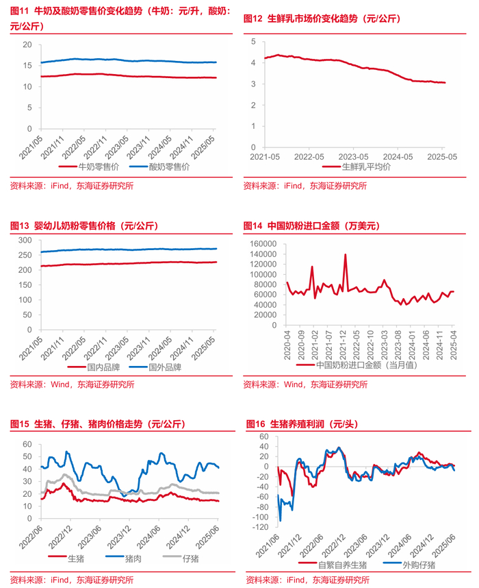 乳制品价格:截至2025年5月30日,牛奶零售价12.16元/升,周环-0.08%,同比-0.41%;酸奶零售价15.80元/公斤,周环比持平,同比-1.13%;生鲜乳3.06元/公斤,同比-8.40%;国内品牌婴幼儿奶粉零售价226.15元/公斤,国外品牌270.91元/公斤。另外4月中国奶粉进口金额为66112.9万美元。