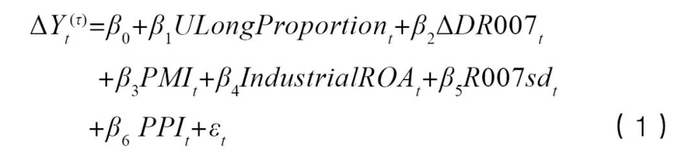 经平稳性检验,ΔY(τ) 、DR007为I(1)序列,以一阶差分形式进入模型,其余变量为I(0),构建回归模型如下: