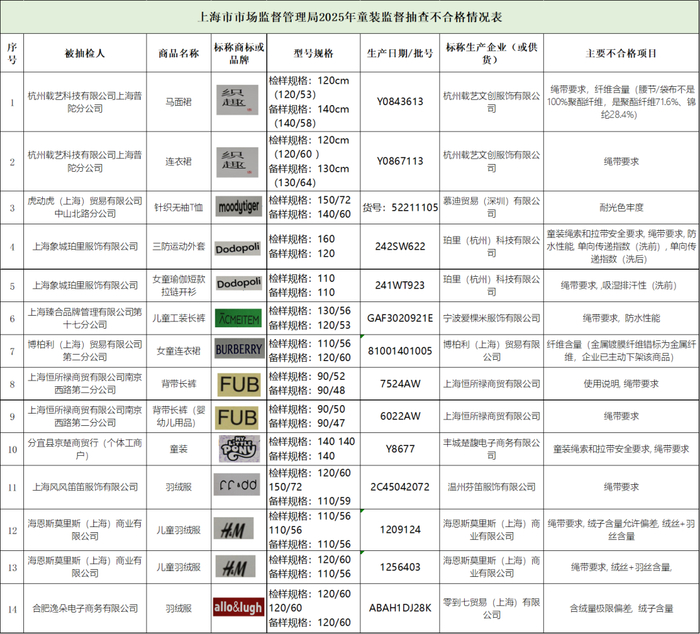 本次抽查不合格项目主要是产品使用说明、纤维含量、绳带要求、童装绳索和拉带安全要求、耐光色牢度、绒子含量、绒丝+羽丝含量、含绒量、防水性能、吸湿排汗性、单向传递指数等,其中绳带要求涉及国家强制性标准。