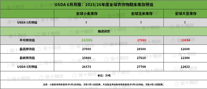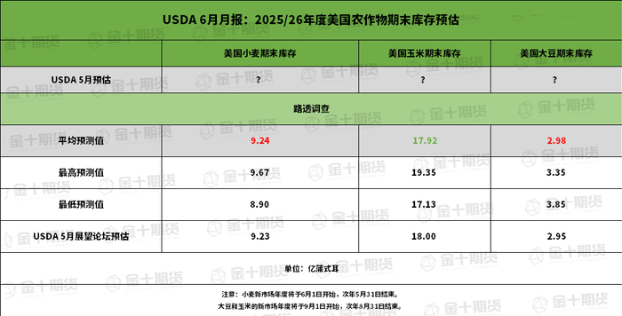 前瞻数据:美国2025/26年度大豆、玉米、小麦期末库存预估