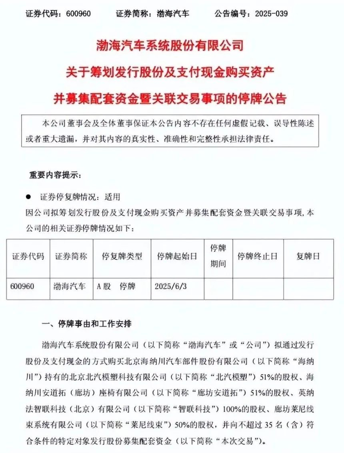 若成功,这将成为渤海汽车上市20年来最大规模的重组动作,也是北汽集团对零部件板块的一次战略重塑。