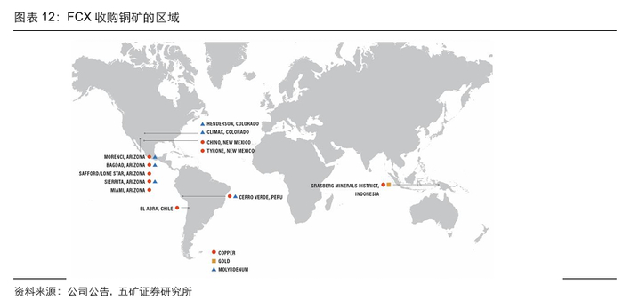 FCX/Phelps Dodge(PD):并购地区的选择策略和紫金矿业颇为一致,先深耕美国本土,后扩展至邻国墨西哥,最后扩展至资源丰富的智利和秘鲁等地。