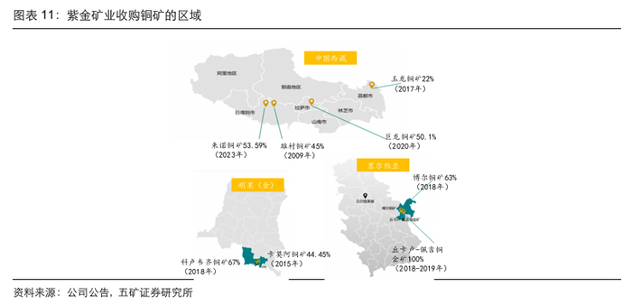 紫金矿业2008年上市,其后聚焦国内铜矿(例如德尔尼铜矿、谢通门铜矿),区域以青海和西藏地区为主。
