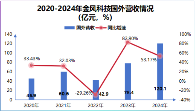 2024年金风科技向15个国家出口了450台风电机组,容量为2478.4兆瓦,接近我国风电出口容量的一半。2024年公司海外营收首次达到120亿,同比猛增53.17%。