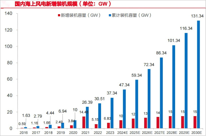 尤其是深海科技的带动下,预计2030年我国海上风电累计装机量将达到131.34GW,所以向金风科技、明阳智能、三一重能等还处于成长阶段,依旧有需求。