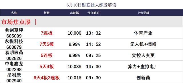 财联社6月10日讯,今日45股涨停,30股炸板,封板率为60%,共创草坪7连板,易明医药5连板,德新科技、金鹰股份3连板,永悦科技7天5板,中电鑫龙5天4板,昂利康6天4板,交大昂立10天4板,北交所花溪科技、国航远洋30CM首板。市场午后快速走低,创业板指领跌。沪深两市全天成交额1.42万亿,较上个交易日放量1290亿。盘面上,市场热点较为杂乱,个股跌多涨少,全市场超4000只个股下跌。板块方面,港口航运、美容护理、创新药、稀土永磁等板块涨幅居前,华为昇腾、军工、半导体、软件开发等板块跌幅居前。截至收盘,沪指跌0.44%,深成指跌0.86%,创业板指跌1.17%。