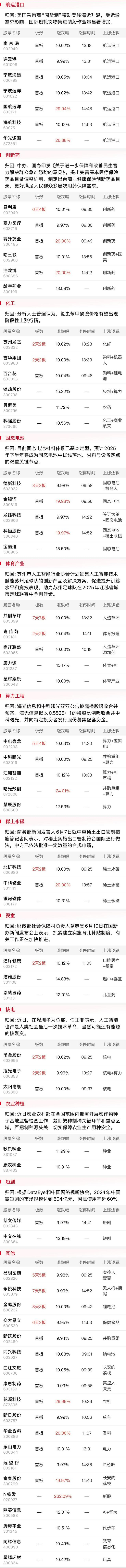 据Market Watch报道,中国6月初输往美国的货柜海运活动逐渐增加,数据显示,由中国和东亚输往美国西岸的货柜海运费率,最近一周跳涨94%。航运板块午后应声大涨,国航远洋、宁波海运、连云港等多股封涨停。除去美西航线价格暴涨外,亚欧方向也呈现出联动大涨,上海至鹿特丹和意大利热那亚的运价分别上涨了32%和38%。全球多条航线价格的大幅跳涨,与中美关税互让存在90天的窗口期内的抢运潮直接相关。而此前作为涨价概念核心的农药、分散染料等化工板块尽管仍维持逆势活跃,但随着20厘米趋势股广康生化尾盘跳水以及人气龙头联化科技炸板回落,若短期这两只风向标品种无法迅速予以反包,需要警惕其内部继续分化淘汰之风险。
