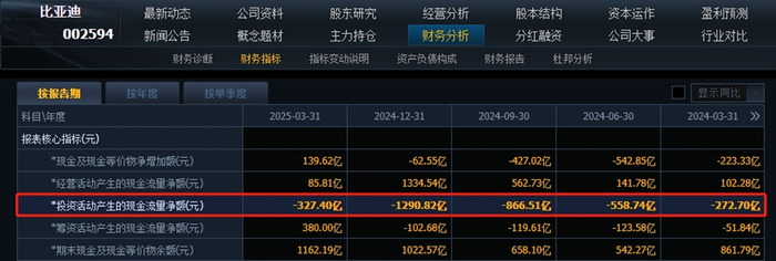 财报显示,2025年一季度末,比亚迪存货较年初大幅增长33%,大概率就是库存车占用了部分经营活动现金。