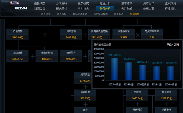 比亚迪截止到2025年一季度,比亚迪所有者权益,比去年同期增加了25%,说明比亚迪的家底变厚了,至少从账面上看,人家家底的确很厚实。