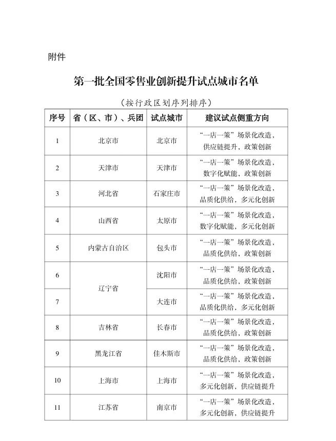 6月5日,商务部等5部门发布《关于公布第一批全国零售业创新提升试点城市名单的通知》。南京、苏州入选第一批名单,成为全国38个试点城市之一,将重点围绕“一店一策”场景化改造、多元化创新、数字化赋能等方向开展先行先试。