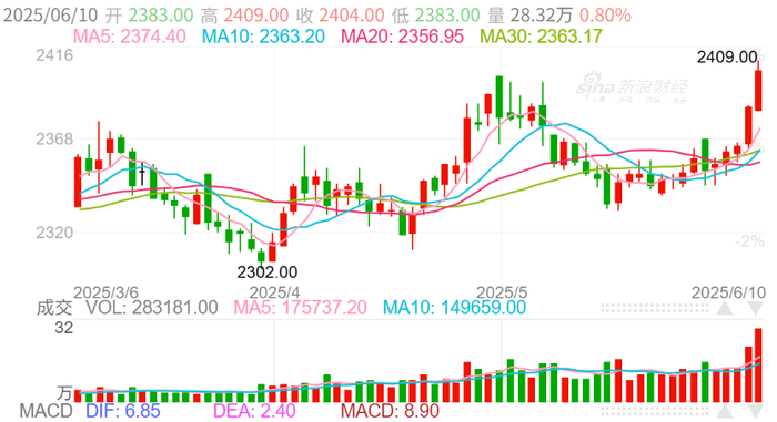 6月9日,山东深加工企业玉米收购高价突破2500元/吨,全国玉米日均价2357元/吨,较6日上涨20元/吨,刷新年内新高,处于2024年9月以来高位;大连玉米期货09合约高价涨至2409元/吨,创该合约新高;6月7日,河南启动小麦托市,提振玉米市场看涨情绪,本周玉米期现迎强势上涨。