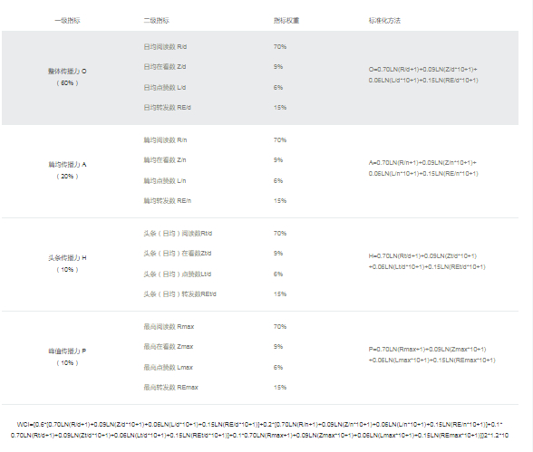 榜单排名基于业界公认WCI指数,综合数据具体运算公式如下:
