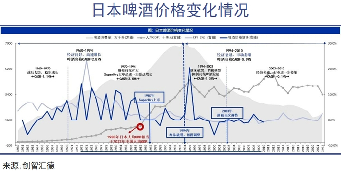 类似的趋势在海外市场早有先例。1994年,日本在泡沫经济破裂和啤酒税政策双重的打击下,整体消费量陷入低迷,多家企业面临生存压力。但也正是在这一背景下,部分厂商主动调整产品结构、聚焦性价比,扩展差异化品类,在低增长环境中完成自我重构,最终走出了三得利、朝日等一批具有竞争力的品牌。