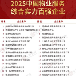 重磅!好服务 新价值:2025中国物业服务企业综合实力百强及研究报告正式发布