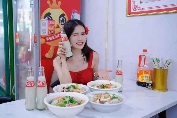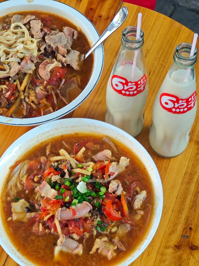 点一碗老友意面或者是炒老友意面,再搭配一瓶广西人嗦粉必备的6点半豆奶,解辣解渴又解腻,特别是夏天,冰镇豆奶真的一秒降温!