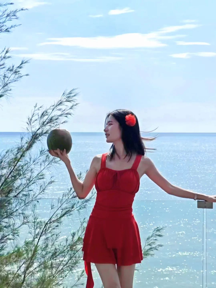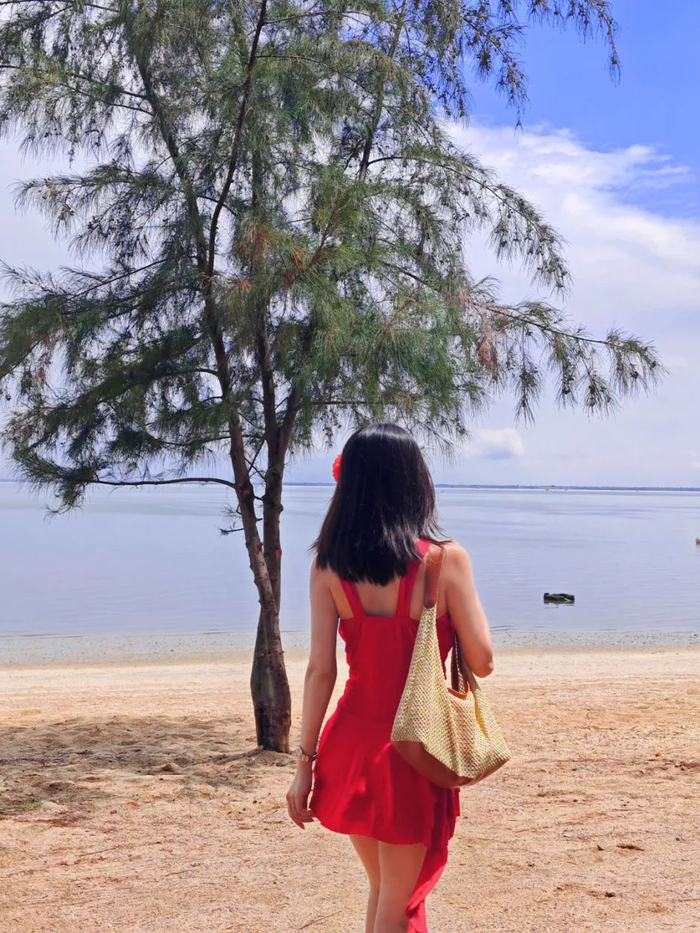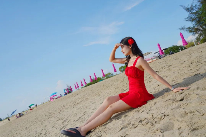 专门挑下午3时到紫霞湾,海水一眼看去就是蓝色的果冻海,沙质很细腻。