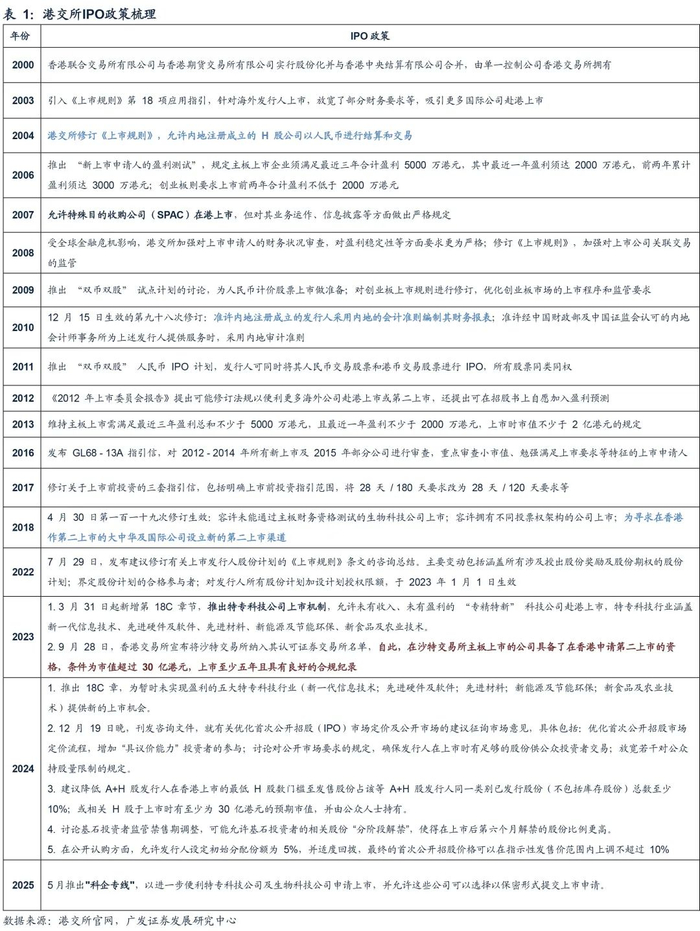 近年来,内地监管部门明确加力支持内地行业龙头企业赴香港上市。2024年4月,中国证监会发布5项资本市场对港合作措施,支持内地行业龙头企业赴香港上市,共同促进两地资本市场协同发展;同年10月,香港证监会与香港联交所作出联合声明,宣布将优化新上市申请审批流程时间表,增强上市工作流程的透明度,以进一步提升香港作为区内领先的国际新股集资市场的吸引力。2025年5月22日,国常会上证监会首席风险官、发行监管司司长严伯进指出,证监会坚定不移地推进资本市场高水平对外开放,大力支持科技企业用好境内外“两个市场、两种资源”。