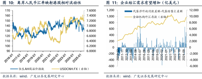 跨境流动性有望改善,非美资产相对受益,香港市场是重要的非美资产之一。根据新华网,5月16日穆迪将美国主权信用评级从Aaa下调至Aa1,5月22日众议院全体会议审议通过“大而美”(big and beautiful bill)法案。据广发宏观《如何理解美国财政现状和其未来演变》,税收和关税政策可能导致2026财年财政赤字较2025财年增加3200亿美元左右,财政赤字率可能达到7%(2024年为6.4%),同时关税摩擦背景下财政可持续可能受到威胁,财政会陷入两难:收缩则增长可持续性承压,扩张则财政可持续性承压。特朗普税改法案加剧了市场对美国偿债能力的担忧,贸易摩擦背景下美元资产安全性下降,跨境资金流出美国与美元资产。