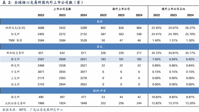 港交所持续推进海外市场互联互通,正在为吸引东南亚及中东地区公司来港上市而着手努力。例如积极开设海外办事处,自2022年在新加坡设立首个海外办事处后,港交所2022年底以及2023年分别在纽约及伦敦设立办事处,2025年将在利雅得开设办事处。扩大交易所互认机制涵盖范围,增加纳入印尼证券交易所和沙特证券交易所,并且允许在这两家交易所上市的公司来到香港申请第二次上市。