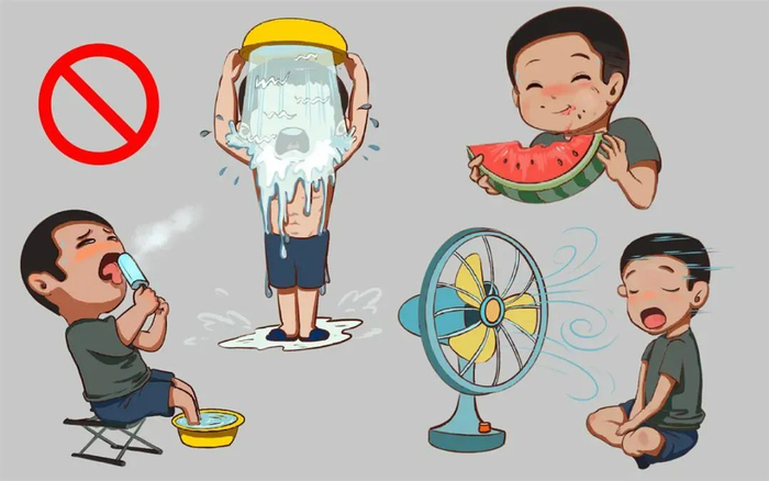 禁:中暑者"四大禁忌",忌过度冲凉、忌过度吹冷风、忌大量生冷瓜果、忌大量冰冷食品。