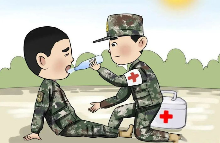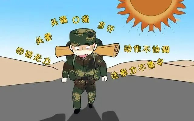 随着训练强度的增加,可能会有官兵出现身体不适,并伴有精神恍惚、心率过快等症状,其实这就是中暑的征兆,遇到这种情况莫慌张,遵循"移、降、补、禁"的原则。