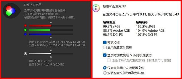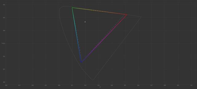 实测这块显示屏的峰值亮度达到了500.11nits,支持99.8% sRGB和98.6% DCI P3色域覆盖,sRGB色域容积高达152.2%,DCI P3色域容积为107.8%,亮度和色域都达到了专业级显示器的水准。