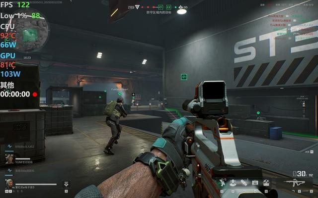 首先笔者体验了《三角洲行动》,2560x1600分辨率、最高画质下,平均流畅度可以达到115fps,运行流畅度非常不错,而且对于射击类游戏更为重要的1% LOW帧表现也很出色,平均都在80fps以上。