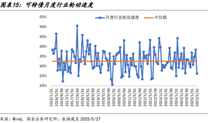 从必要性、重要性角度来看,不同行业转债业绩分化明显,且 2025 年以来行业轮动速度1加快,进一步提高了该策略的研究紧要性。从月度行业轮动速度指标来看,2025 年以来绝大部分行业处于中位数水平以上,轮动速度较前期显著增加。为探索行业轮动模型理论上限,基于后验视角,取年度 Top5 行业等权配置,其收益表现远超双低策略指数、中证转债指数表现,再次论证了可转债行业轮动模型的重要性。
