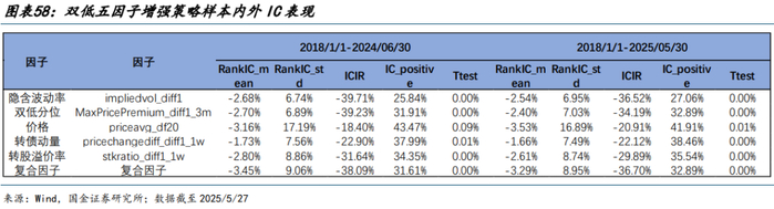 受一级行业个数远小于可转债个数影响,在行业层面因子 IC 略低于个券层面表现,四因子 ICIR 大多在 0.16 以上,单因子胜率均在 40%以上,复合因子样本内外表现较为一致并无明显失效现象。