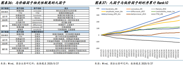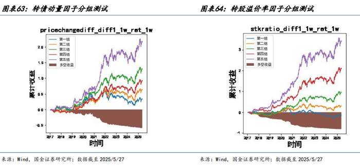 从市值、行业分布来看,转债正股分布集中在 150 亿元以下中小市值个股以及银行、电力设备相关行业。截至 2025/3/31,转债市场共有 421 只个券,市场余额为 6362.68 亿元,其中 150 亿元以下个股数量占比达 75%。中小市值个股往往信用资质相对较低,再融资渠道有限,发行可转债对短期也不会对公司造成股权稀释压力,故而转债成为中小企业的重要再融资方式之一。而银行股其市值规模通常较大,虽然其发行数量较低(占比 2.6%),但从可转债余额体量来看,银行业(占比 25.8%)也远超基础化工、医药生物等行业,故而量化转债因子中行业中性化成为因子预处理的重要流程之一。