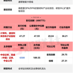 财联社6月11日讯,今日有1只新股申购,为创业板的新恒汇;1只新股上市,为科创板的影石创新。