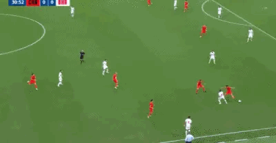 第32分钟,张玉宁在底线附近低平球倒三角传中,小禁区线附近的王钰栋将球打飞,错过了上半场中国队最好的得分机会。