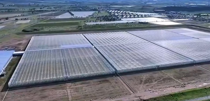 乌兰察布市察右前旗现代农业产业园30万平方米的巨型智能温室大棚。