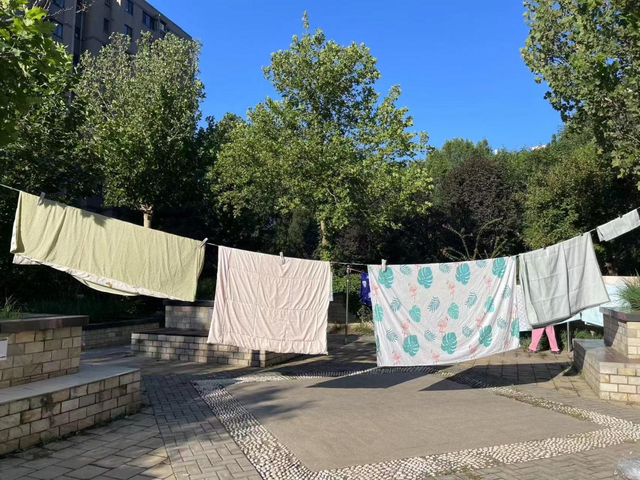 远洋一方嘉园社区属于老旧小区,过去小区里的晾衣杆较少,再加上风吹日晒,原有的晾衣杆老化、破损严重。“我们夏天想晒晒被子、晾晾衣服,每次都要跑大老远的,太不方便了。”居民胡女士无奈地说。很多小区居民也抱怨楼下没有合适晾衣的地方。一些居民没有办法,只能在健身器材、树木之间私自拉绳晒被子、晾衣服,这种做法不仅与小区环境不协调,同时也存在一定的安全隐患。
