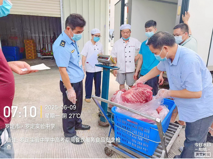 高考前期,罗定市市场监管局执法人员联合属地镇街工作人员,提前对涉高考的9家学校及周边地区的食品经营单位(200米范围内)全面开展食品安全事前评估及隐患排查工作,及时发现食品安全隐患,下达整改法律文书,督促学校限期整改。高考期间,罗定市市场监管局严格执行相关工作部署,落实人员驻点保障监管制度,对考试期间学校采购的食用农产品开展快速检测,严把食材质量关;认真审核每餐的菜单,严禁高危食品供应;督促食品从业人员规范操作,严禁食品生熟混放;加强供餐食品中心温度检测,确保烧透煮熟,全过程加强食品安全监管,确保高考期间广大师生饮食安全。本次食品安全保障工作,共出动执法车辆86车次,工作人员132人次,检测食用农产品82批次、水果2批次,结果均为合格。