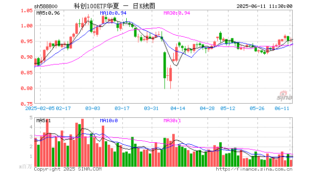科创100ETF华夏(588800)涨0.00%,半日成交额6258.77万元