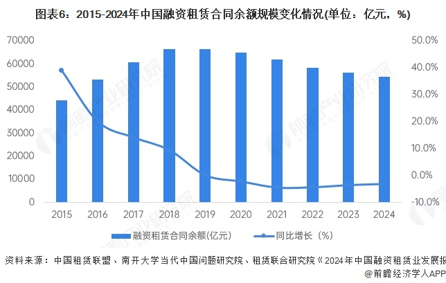 2024年以来,融资租赁行业整体发展呈现放缓态势,企业数量和合同余额延续负增长趋势,但整体市场需求依然稳定。预计未来六年,行业整体投放规模增速将继续保持缓慢增长,年均增速将维持在5%左右。