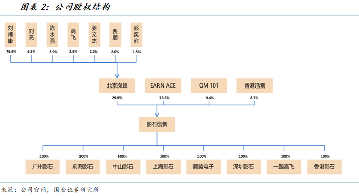 公司股权结构稳定,创始人刘靖康是实际控制人,其余各核心技术人员也间接持有公司股份。公司创始人刘靖康及其一致行动人潘瑶合计间接持有公司29.9%的股份,是公司的实际控制人。作为核心技术人员之一,主持公司数十项全景相机产品核心技术的研发和设计工作。公司核心技术人员贾顺、姜文杰、肖龙报等人亦间接持有公司股份,形成长效激励机制。