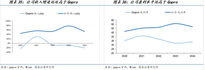 海外龙头Go pro由于产品迭代较慢且盈利能力较弱,收入正不断被公司迎头赶上。