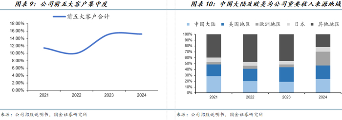 2022-2024年美国地区在公司收入占比分别为21.46%、25.15%、23.38%,2024年美国地区收入同比增长43.11%。2025年2月1日,美国政府宣布对进口自中国的商品加征10%关税;3月4日,再次加征10%的关税;4月2日,美国总统签署行政令,中国大陆及中国香港加征 34%对等关税;5月12日,对等关税中的34%,其中的24%在初始的90天内暂停实施,保留加征剩余 10%的关税。为应对外部风险,公司积极开拓中国大陆、欧洲及其他非美地区的市场,并积极布局海外产能以满足下游要求。