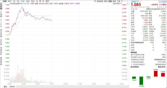 证券股爆发,证券ETF量价齐升一小时成交13亿元