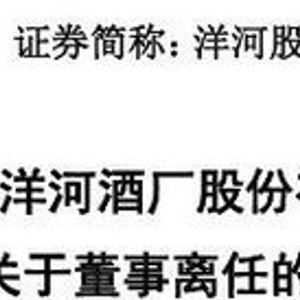 6月10日,洋河股份(002304.SZ)公告称,董事会近日收到董事杨卫国的辞职报告。因工作调动原因,杨卫国申请辞去公司第八届董事会董事及战略委员会委员职务,辞职后将不再担任公司及控股子公司任何职务。公告还显示,杨卫国原定任期至第八届董事会届满,系提前离任,当前其未持有公司股份,且无未履行的公开承诺。