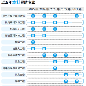 2025年本科绿牌专业包括:电气工程及其自动化、微电子科学与工程、机械电子工程、新能源科学与工程、车辆工程、机器人工程,均为工科专业。