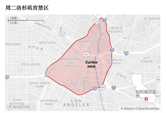 宵禁将于太平洋时间晚上8点开始,早上6点解除。市长表示,警方将逮捕任何违反命令的人。预计宵禁将持续数日。