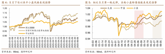 纠结情绪的累积:价格与估值的螺旋上升。一方面,随着本周中小盘风格重回上行区间,新消费/创新药/科技等方向轮番表现,中证转债指数延续端午节前反弹趋势进一步上探。与之相对应的,当前90-110元平价区间转债价格中位数已来到122元水平,处在今年以来震荡区间上沿,估值亦来到20%上方。但另一方面,主题轮动提速下,相比5月反弹过程(由中小盘向大盘),本轮行情呈现为大盘转债向中小盘转债过度趋势。对于以均衡稳健风险偏好为主的固收+投资者,相比于5月大盘底仓品种配置的安心感,高估值环境中市场重回主题、小余额券交易,高波动行情一定程度上使得持有压力再提升。