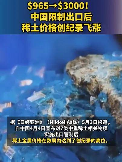 具体来看,早在5月初,欧洲市场镝价已从每公斤425美元飙升至850美元,涨幅达100%。