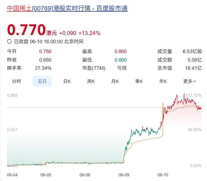 更猛的是港股的中国稀土,盘中一度暴涨超50%!