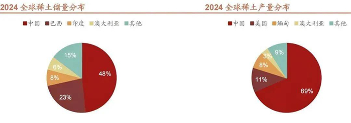 一是储量丰富。美国地质调查局数据显示,2024年中国稀土储量达4400万吨,占全球近49%的储量。当年产量27万吨,占全球的69.2%。