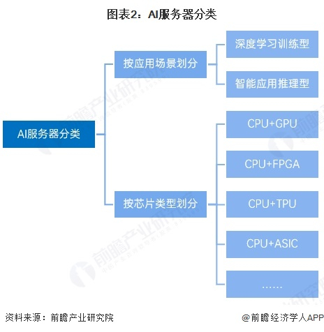AI服务器主要由DRAM、GPU、加速芯片、网卡、散热模组等电子组件组成,根据应用场景不同,AI服务器可分为深度学习训练型和智能应用推理型;根据计算模块结构不同,AI服务器可分为CPU+GPU、CPU+FPGA、CPU+ASIC等组合模式。其中,常见的AI服务器计算模块结构为CPU+多块GPU组合模式。